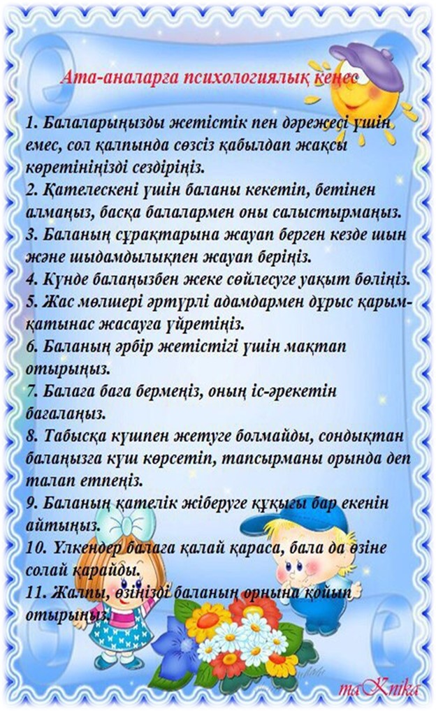 — Балаңыздың кемістіктерін бетіне басып, басқа балалармен оны салыстырмаңыз.
